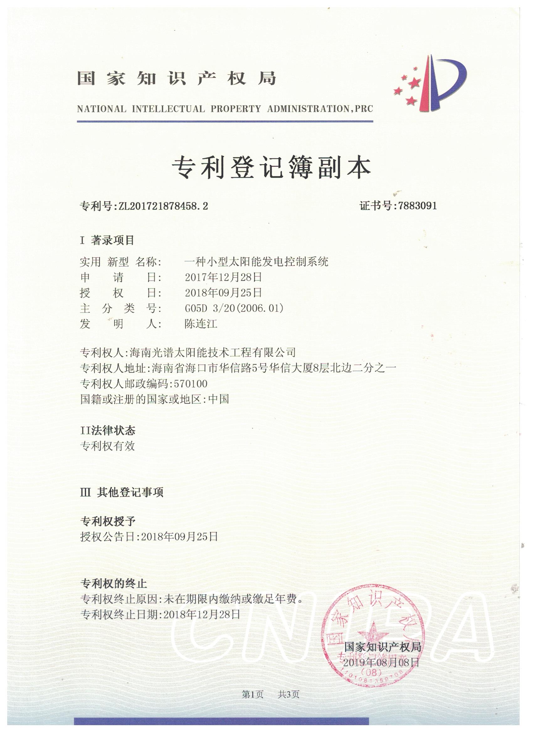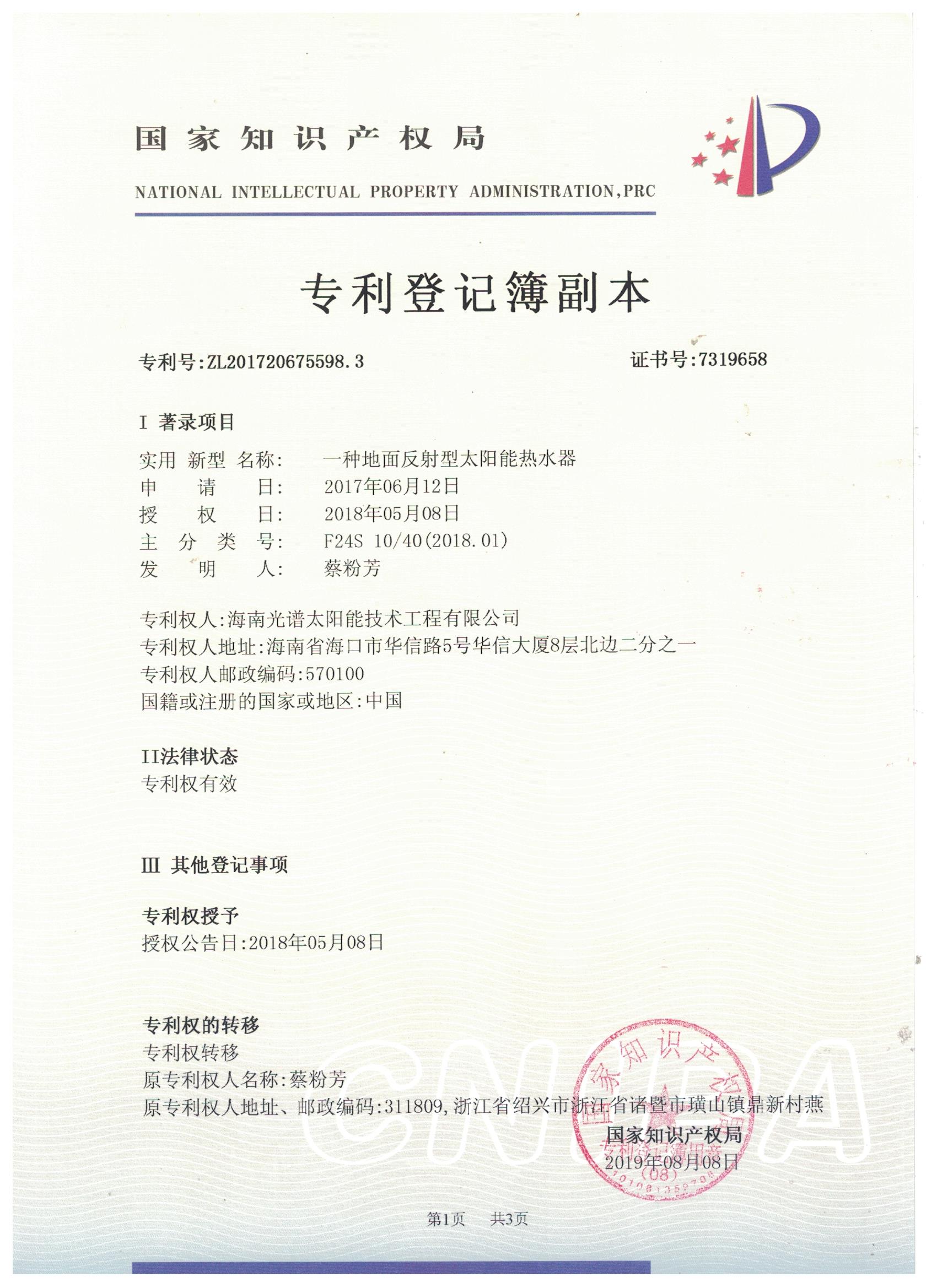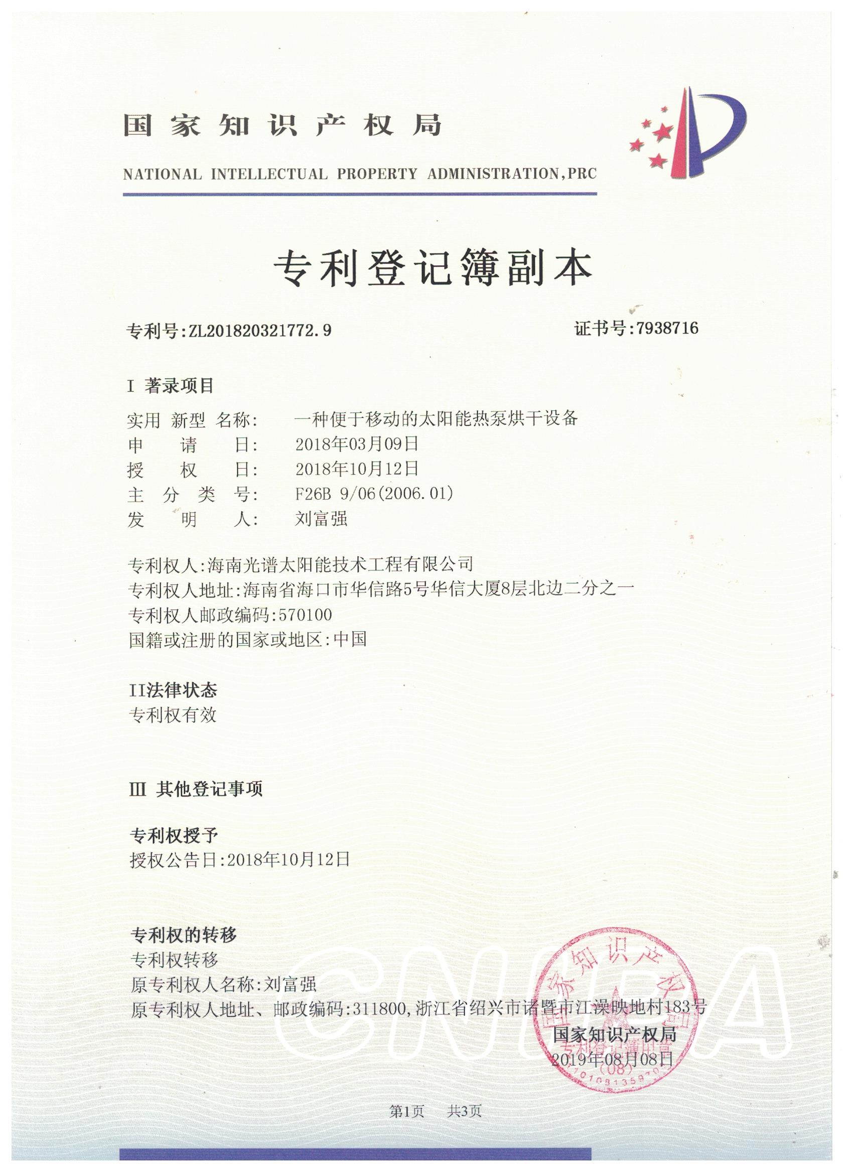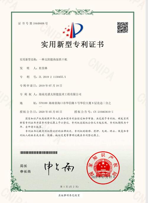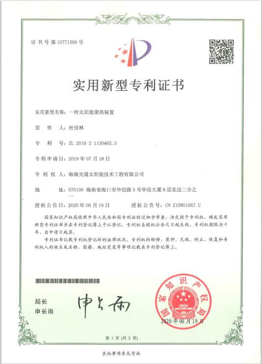近日,我司申報(bào)的“一種太陽能熱泵蒸汽發(fā)生裝置”發(fā)明專利通過審查,獲得國家知識產(chǎn)權(quán)局授予的發(fā)明專利證書,授權(quán)專利號為“ZL201911126309.4”。 此次獲得國家頒發(fā)的專利證書,是對海南光譜公司創(chuàng)新實(shí)力的認(rèn)可,代表著我司知識產(chǎn)權(quán)取得了突破性進(jìn)展,為公司的持續(xù)性發(fā)展提供強(qiáng)有力的科技創(chuàng)...